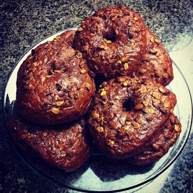 Previous Next Published December 27, 2014 at 612 × 612 in Breads Double Chocolate Granola Bagels – $16 for 8 Ingredients: water, sugar, yeast, bread flour, cocoa powder, salt, chocolate chips, granola Share this: Click to email a link to a friend (Opens in new window) Email Click to share on Facebook (Opens in new window) Facebook Click to share on Pinterest (Opens in new window) Pinterest Click to share on X (Opens in new window) X Click to share on LinkedIn (Opens in new window) LinkedIn Like Loading...