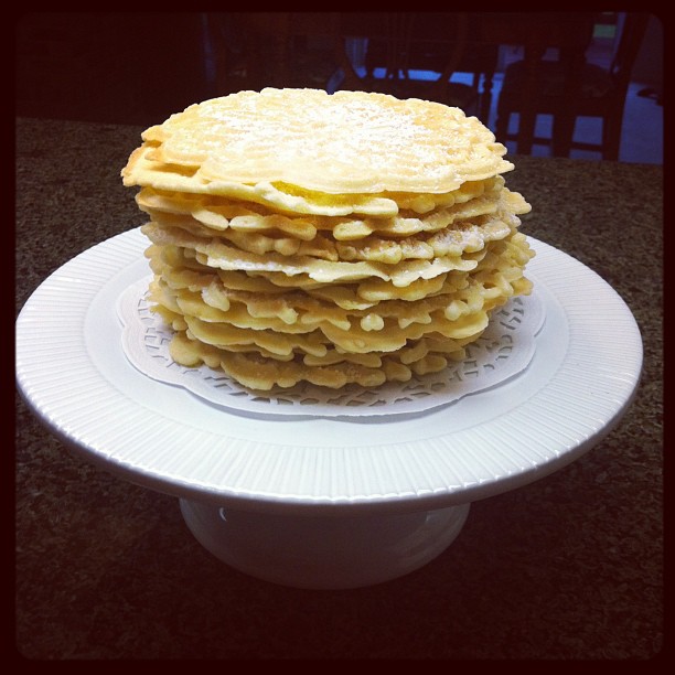 Previous Next Published December 27, 2014 at 612 × 612 in Cookies Pizzelle’s – $30 Includes 55-60 Pizzelle’s. Labor intensive process. Flavors: vanilla or pecan Ingredients: flour, sugar, butter, vanilla, eggs, baking powder, pecans (optional) Share this: Click to email a link to a friend (Opens in new window) Email Click to share on Facebook (Opens in new window) Facebook Click to share on Pinterest (Opens in new window) Pinterest Click to share on X (Opens in new window) X Click to share on LinkedIn (Opens in new window) LinkedIn Like Loading...