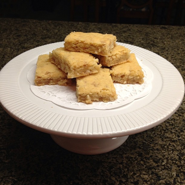 Previous Next Published December 27, 2014 at 612 × 612 in Cookies Toffee Almond Shortbread – $22 Includes 2 dozen bars. Ingredients: sugar, butter, egg yolk, vanilla, flour, salt, almonds, toffee bits Share this: Email a link to a friend (Opens in new window) Email Share on Facebook (Opens in new window) Facebook Share on Pinterest (Opens in new window) Pinterest Share on X (Opens in new window) X Share on LinkedIn (Opens in new window) LinkedIn Like Loading...